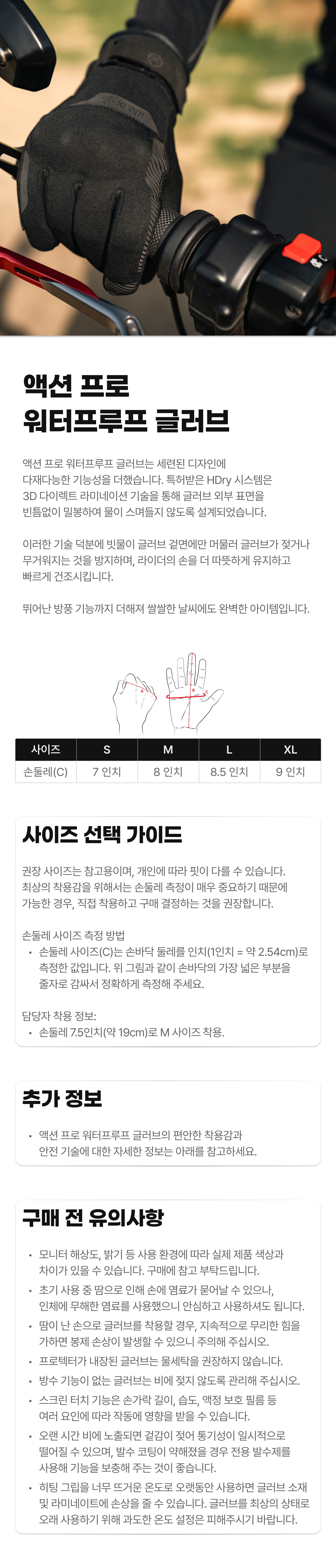 - 모터사이클 글러브는 절대로 물세탁을 하지 마십시오.