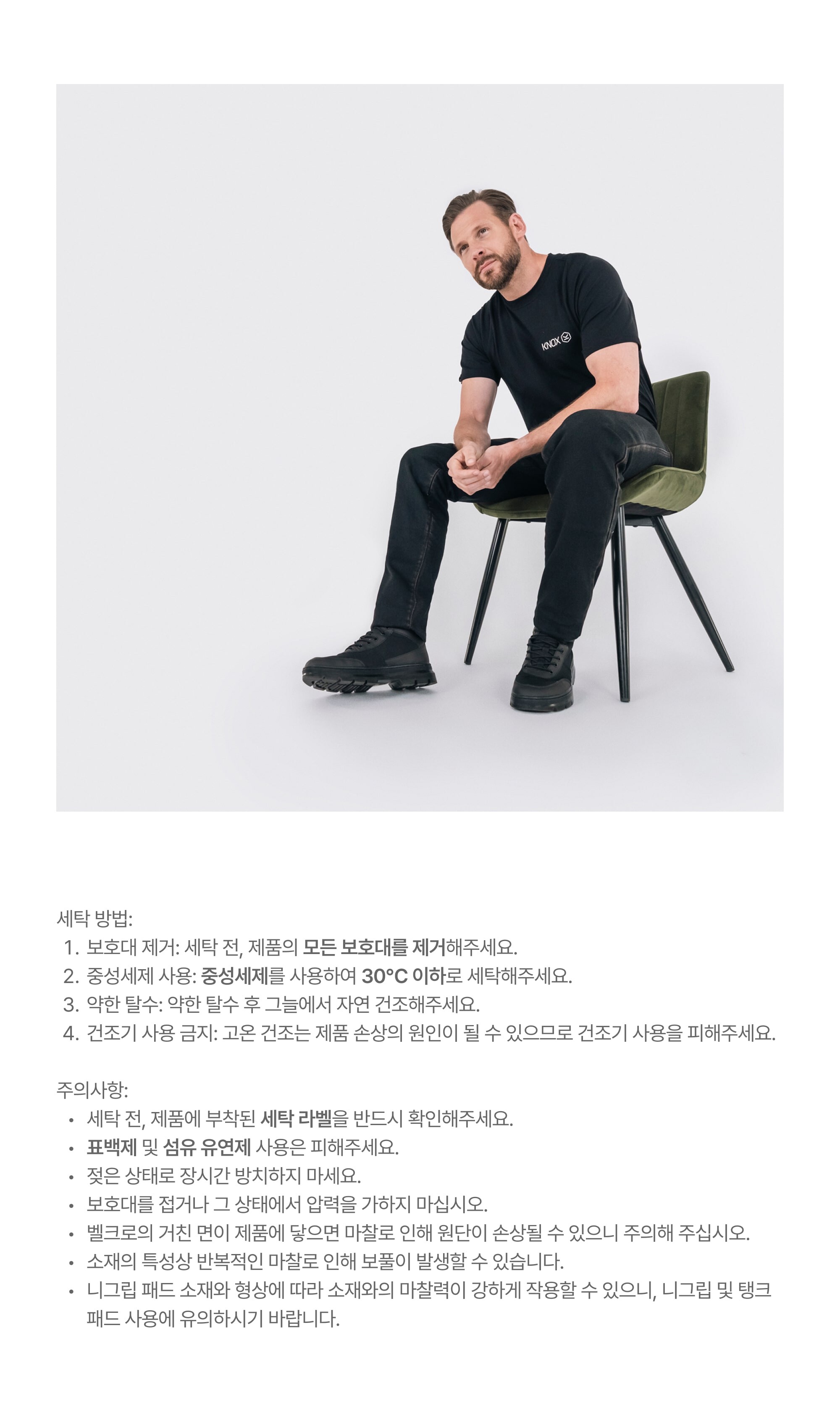 - 보호대의 밀착과 착용감이 좋지만 보호대 포켓의 홀이 좁은 편이므로 넣고 뺄 때 각별한 주의가 필요합니다.