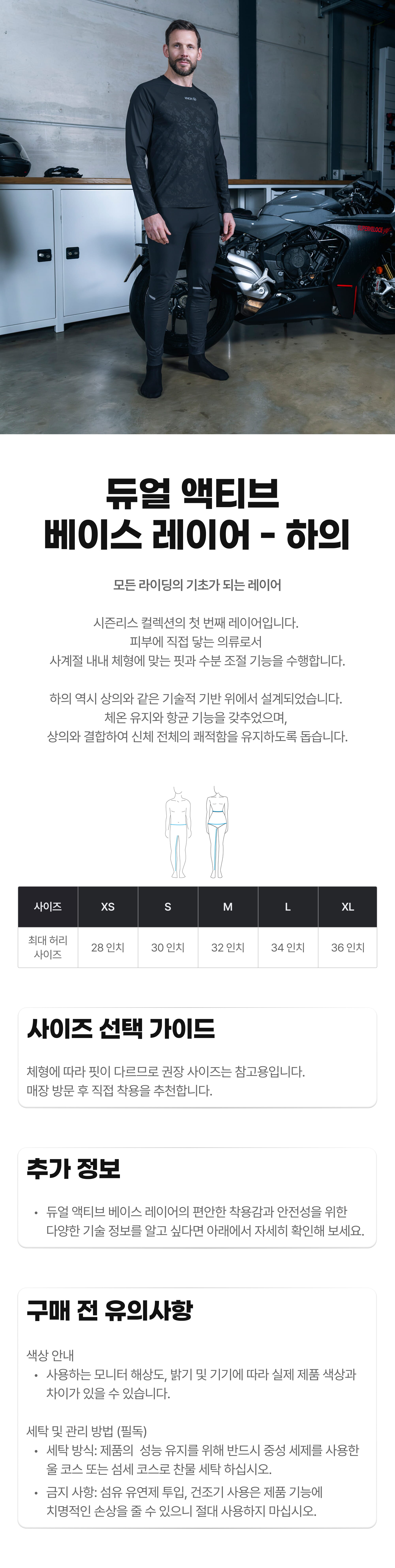듀얼 액티브 베이스 레이어 하의는 상의와 함께 착용하여 편안함과 기능성을 발휘하도록 설계되었습니다. 상의와 동일한 루돌프(Rudolf®) 사의 기술이 적용되었습니다.