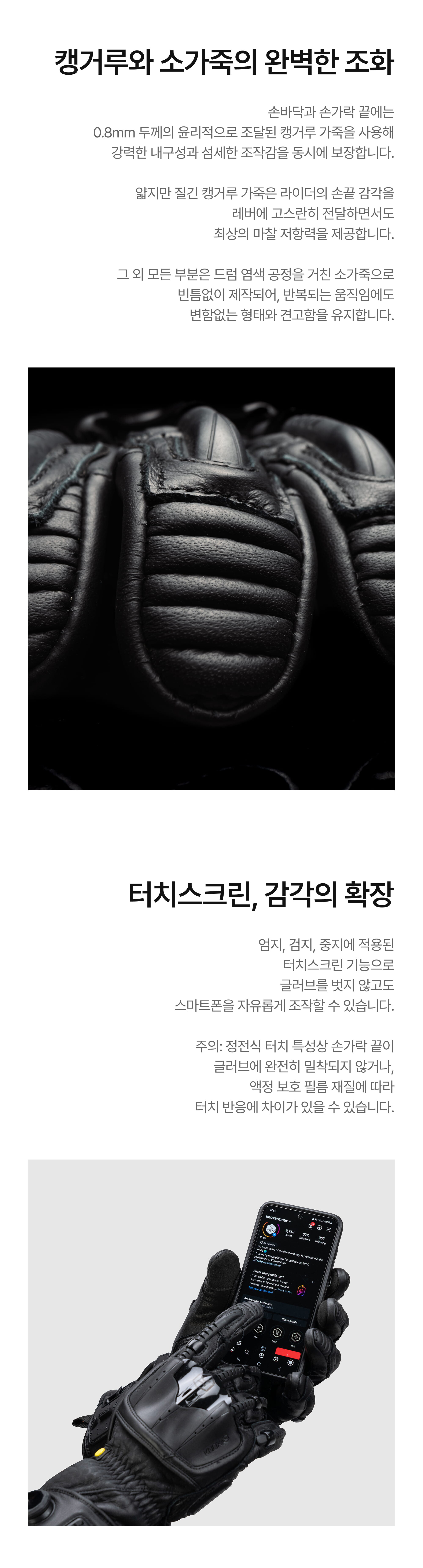 - 일반적인 가죽 장갑과 달리, 모터사이클 글러브는 내피와 다양한 보호 장치들로 구성되어 있습니다.