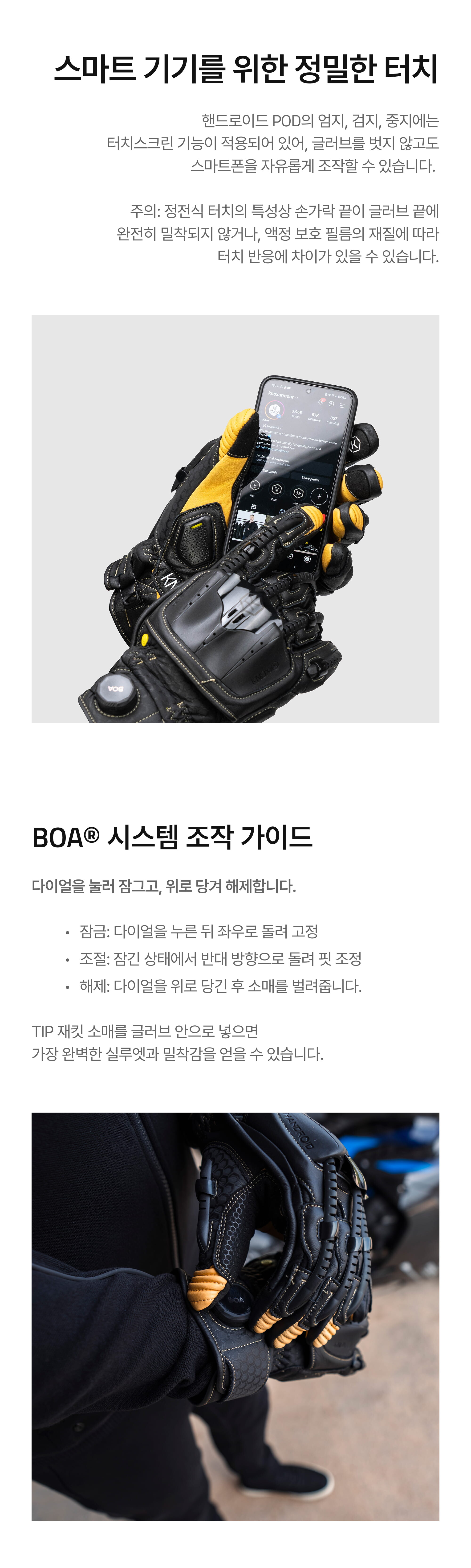 • 손에 땀이 많다면 좀 더 쾌적한 사용을 위해 이너 글러브 착용을 권장합니다.