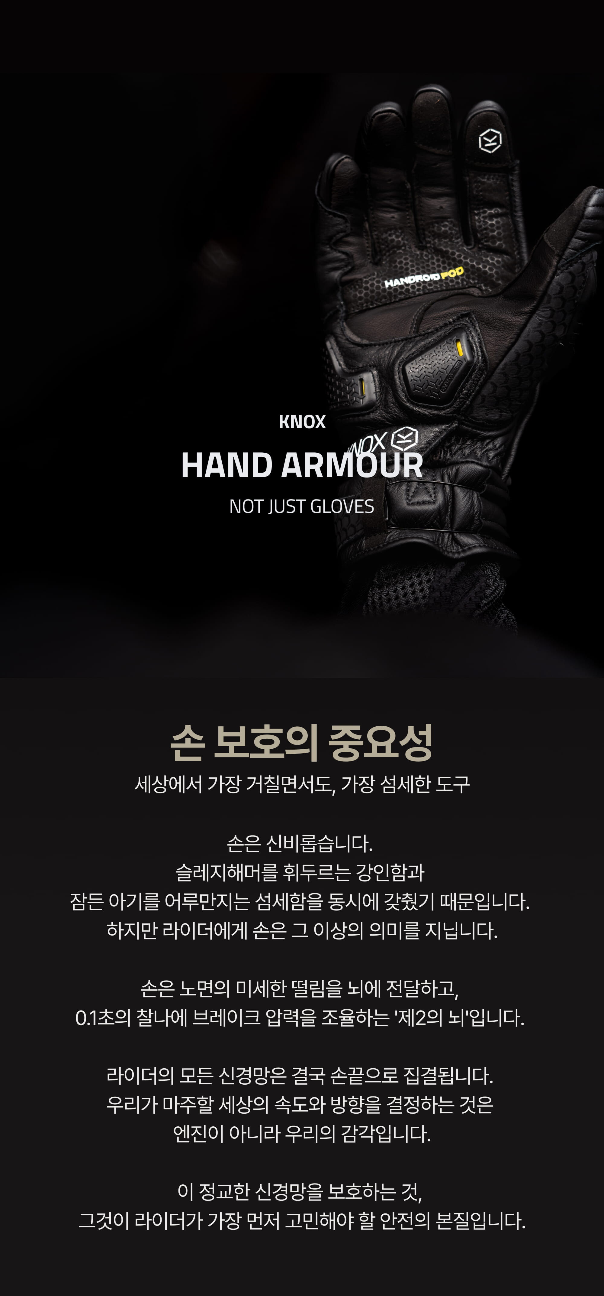 핸드로이드 POD는 시중에서 가장 시각적으로도 압도적인 존재감을 자랑하는 모터사이클 글러브입니다.