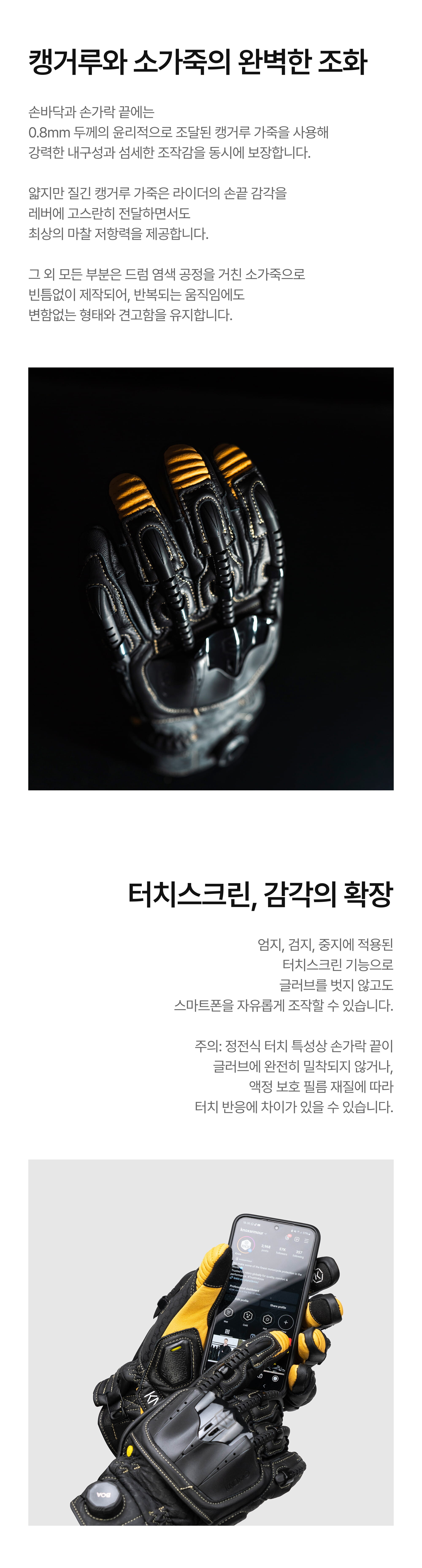 • 일반적인 가죽 장갑과 달리, 모터사이클 글러브는 내피와 다양한 보호 장치들로 구성되어 있습니다.