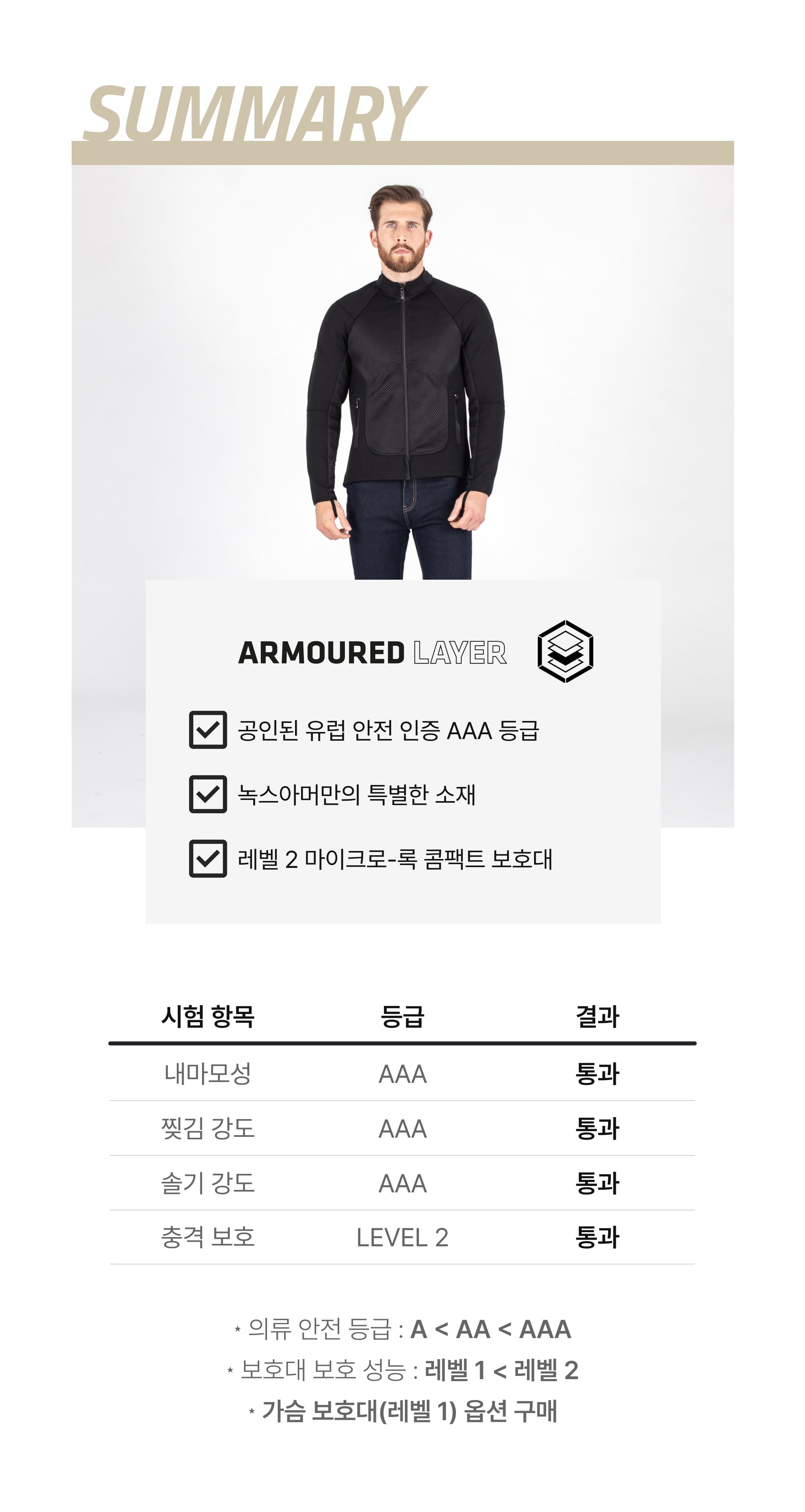 - 가장 기본인 아머드 셔츠 제품은 티셔츠와 베이스 레이어를 착용을 기준으로 안내하는 사이즈입니다.