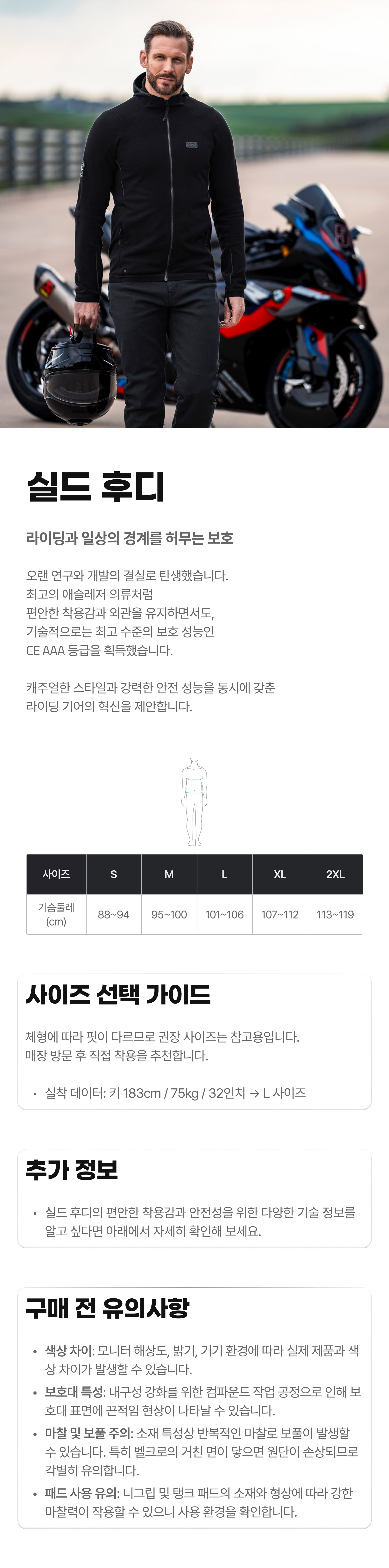 녹스 아머드 셔츠는 단순한 의류가 아닌, 수십 년간의 데이터와 기술력이 집약된 '엔지니어링의 결과물'입니다. 일반적인 재킷 속에 보호대를 넣는 방식에서 탈피하여, 보호대를 신체에 가장 가깝고 편안하게 밀착시키는 설계를 완성했습니다. 이는 충돌이 발생했을 때, 보호대가 위치를 이탈하는 것을 방지하여 어떤 상황에서도 보호 성능이 최적의 지점에서 발휘되도록 돕습니다.