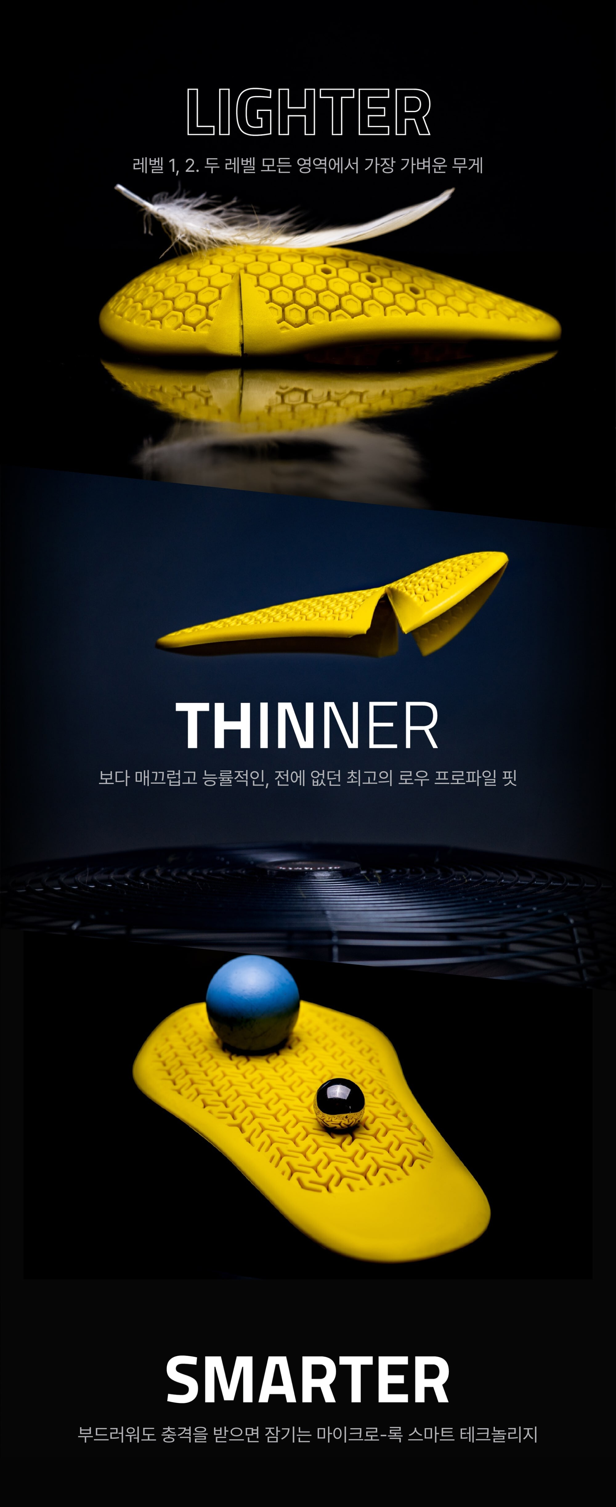 - 보호대의 밀착과 착용감이 좋지만 보호대 포켓의 홀이 좁은 편이므로 넣고 뺄 때 각별한 주의가 필요합니다.