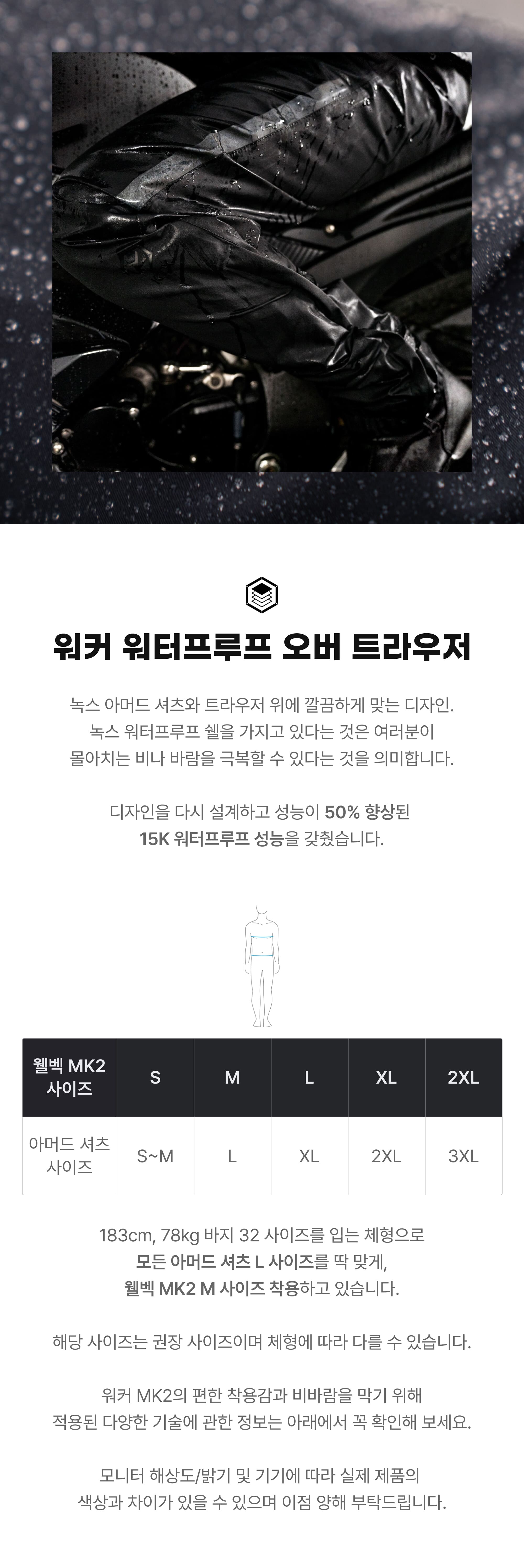 - 가장 기본인 아머드 셔츠 제품은 티셔츠와 베이스 레이어를 착용을 기준으로 안내하는 사이즈입니다.