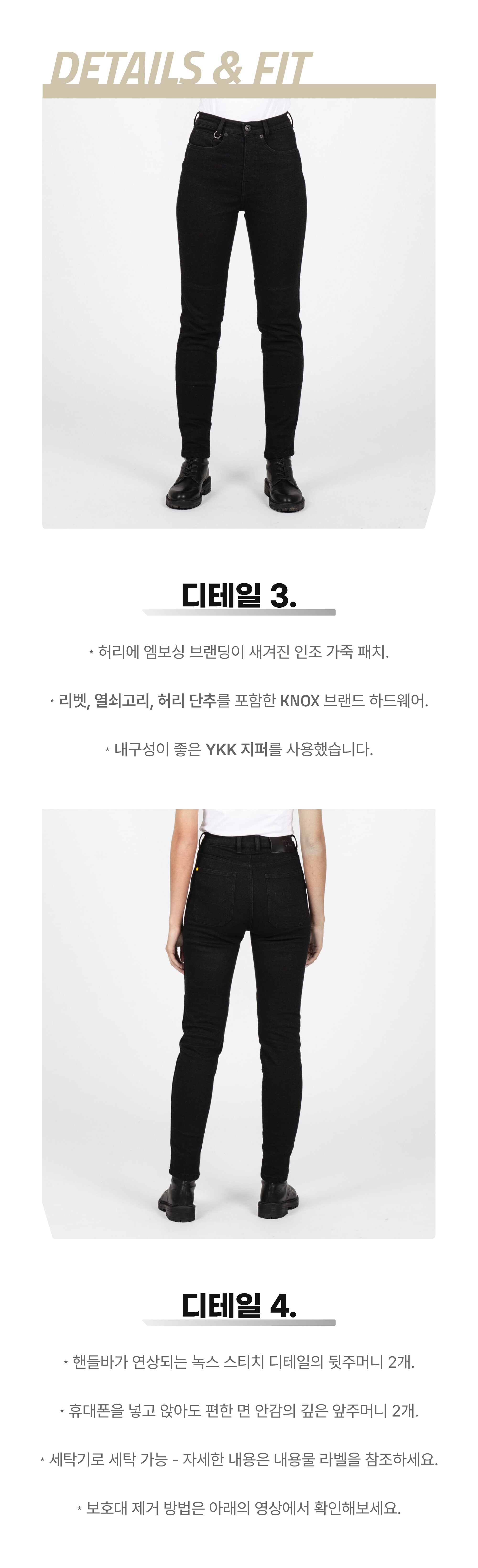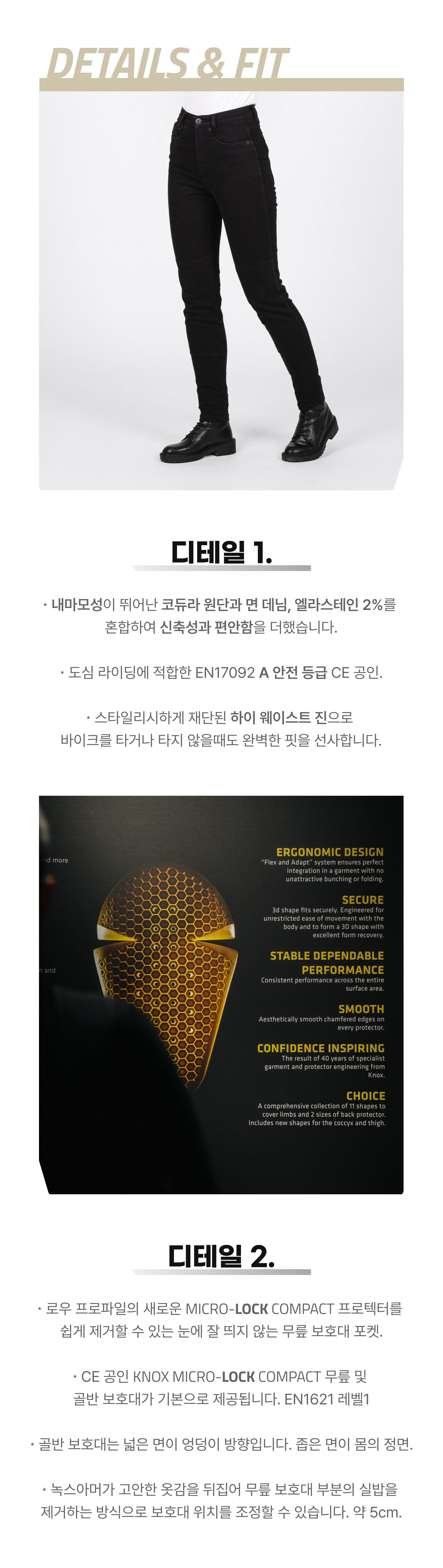 - 보호대의 밀착과 착용감이 좋지만 보호대 포켓의 홀이 좁은 편이므로 넣고 뺄 때 각별한 주의가 필요합니다.