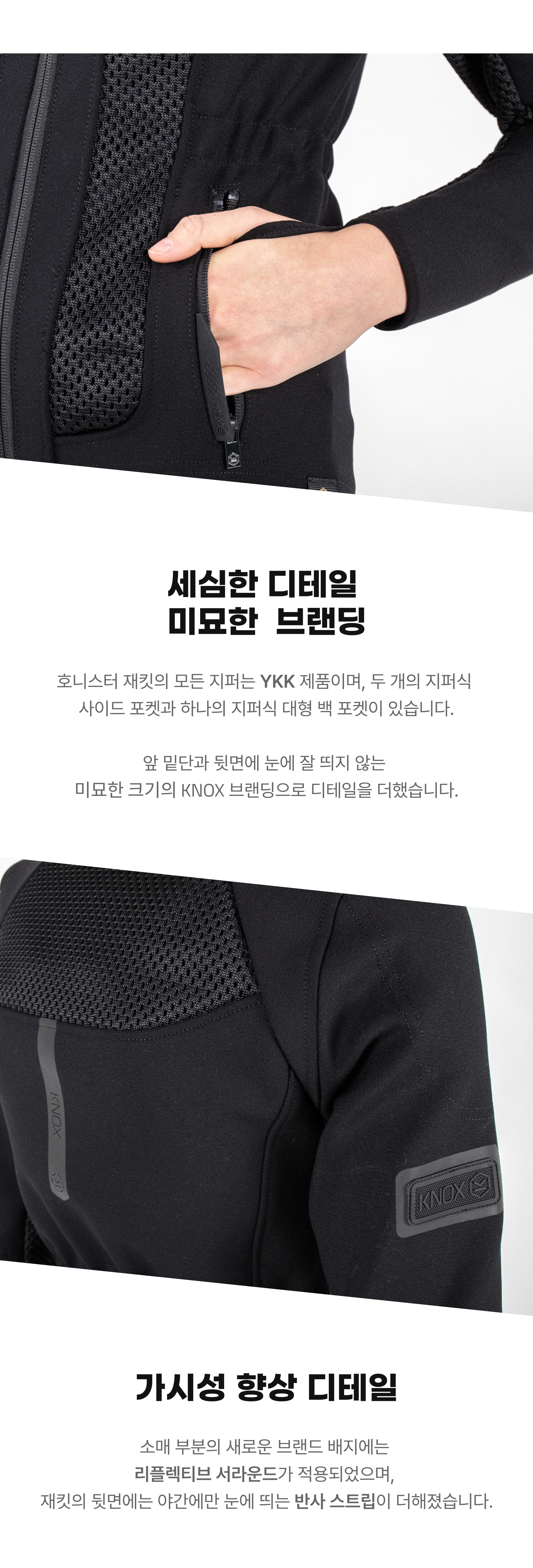 - 보호대의 밀착과 착용감이 좋지만 보호대 포켓의 홀이 좁은 편이므로 넣고 뺄 때 각별한 주의가 필요합니다.
