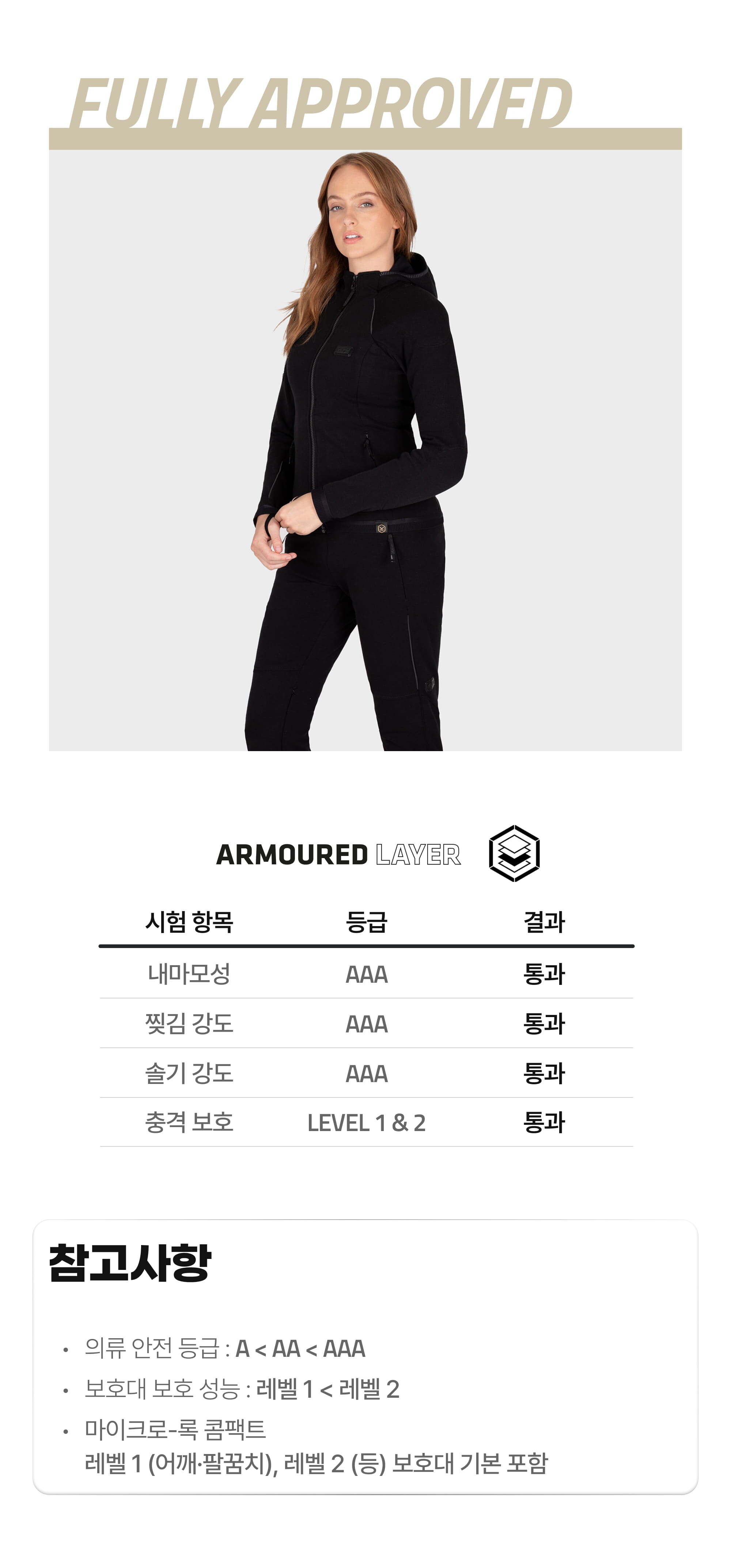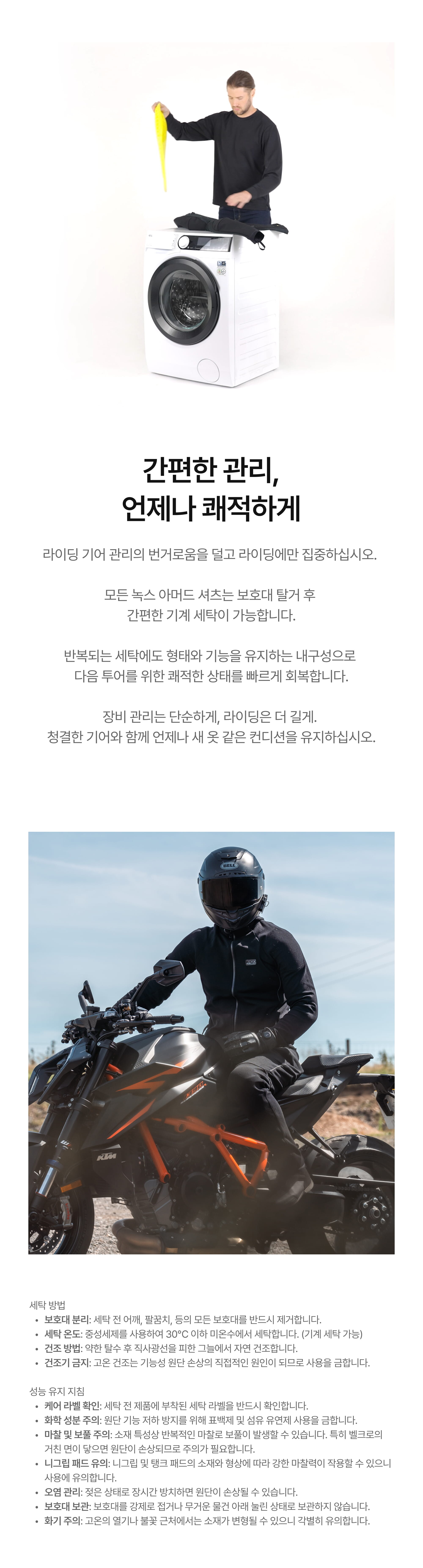 또한, 내마모성과 통기성이 양립하는 고기능성 소재로 더운 날씨에는 단독 착용으로 쾌적함을 유지하며, 날씨에 따라 레이어를 추가하는 KNOX만의 '시즌리스(Seasonless) 시스템'은 사계절 내내 변함없는 안전을 보장합니다.
